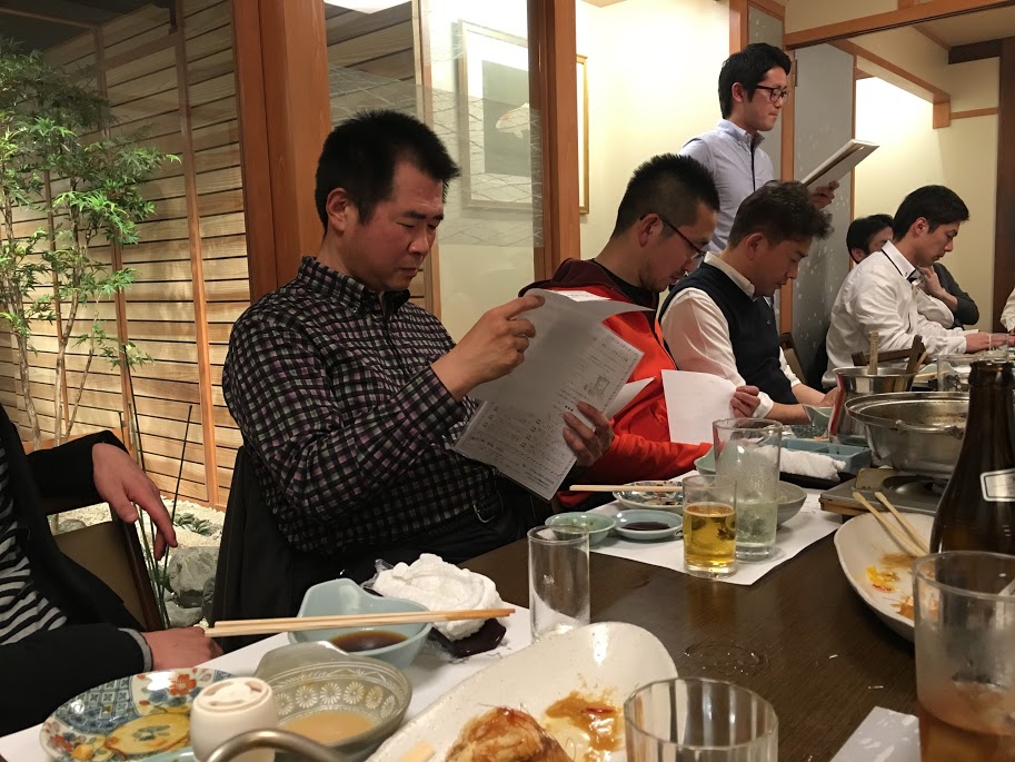 恒例の森先生いじりで始まり、歓談の後0期生の先生から順に実践報告をしていただきました。